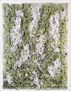 O ritmo de seu trabalho expõe conceitos e materiais distintos para a produção de suas obras. O que permite dar ao “corpo físico” da obra uma forma que pode ser entendida como pintura, mas não uma pintura estabelecida pelos ritos formais, mas criada a partir de diferentes técnicas e materiais. Com raio x, papel de seda, papel cartão, acrílica e alfinetes, as obras de Rosa Areias ganham formas e moldes, muitas vezes sendo uma transposição de suportes.